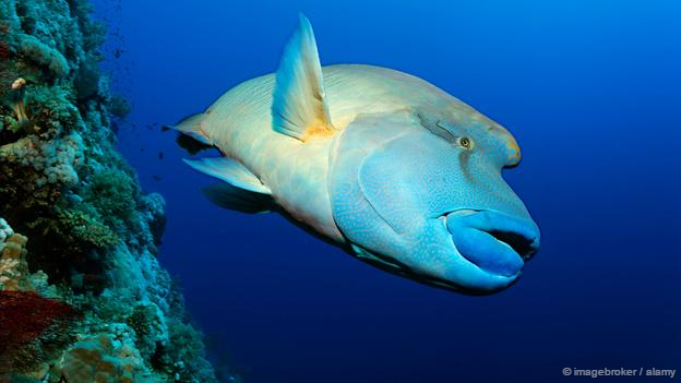 Humphead wrasse อาศัยแถมมหาสมุทรอินโด-แปซิฟิก ตัวผู้อาจมีความยาวได้ถึง 2 เมตร พวกมันเป็นนักล่าแห่งท้องทะเล และสามารถกินสัตว์ทะเลที่มีพิษได้ การทำการประมงที่มากเกินไปทำให้พวกมันใกล้สูญพันธุ์