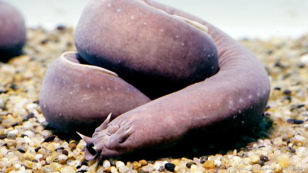 Hagfish เป็นปลามีกระดูกโบราณที่ยังคงหลงเหลืออยู่ในปัจจุบัน พวกมันไม่มีกราม และกินเศษซากปลาหรือสิ่งมีชีวิตในทะเลที่ตายแล้ว ด้วยวิธีดำเข้าในซากปลา แล้วค่อยๆดูดอาหารผ่านผิวหนังเข้าไปหล่อเลี้ยงร่างกาย นอกจากนี้ พวกมันสามารถพ่นเมือกเหนียวออกมาเพื่อใช้ป้องกันตัวจากสัตว์นักล่าตัวอื่นๆ